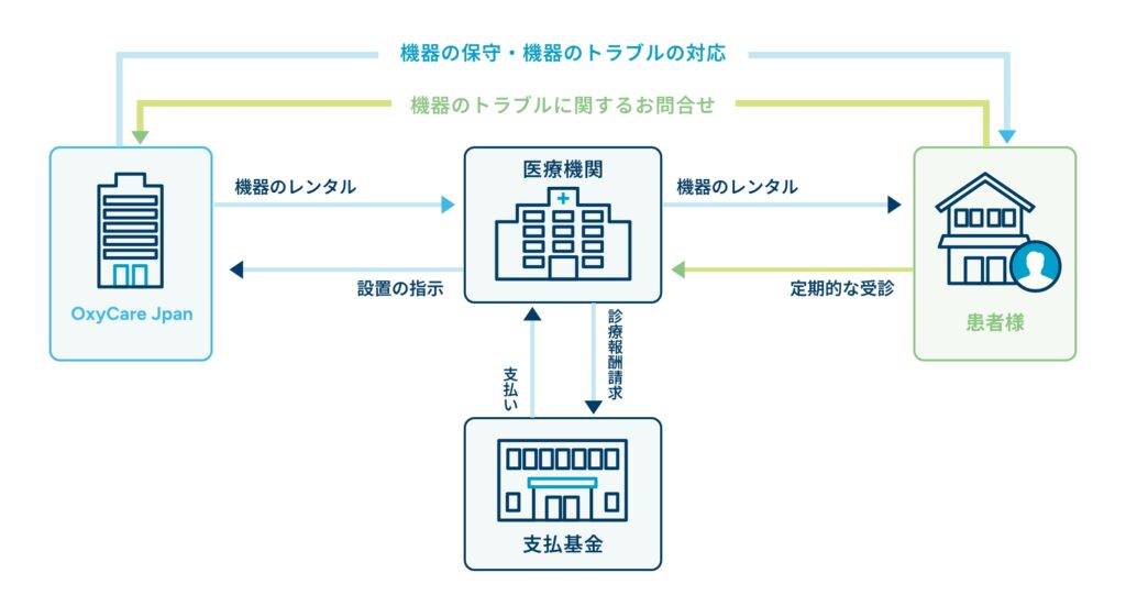医療機関の指示に従い、バイタルエア・ジャパンが患者様宅へ訪問し、機器の設置、操作説明、お手入れ方法、保守点検などの説明を行います。