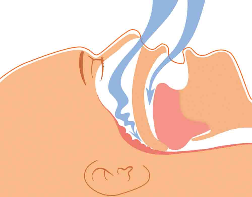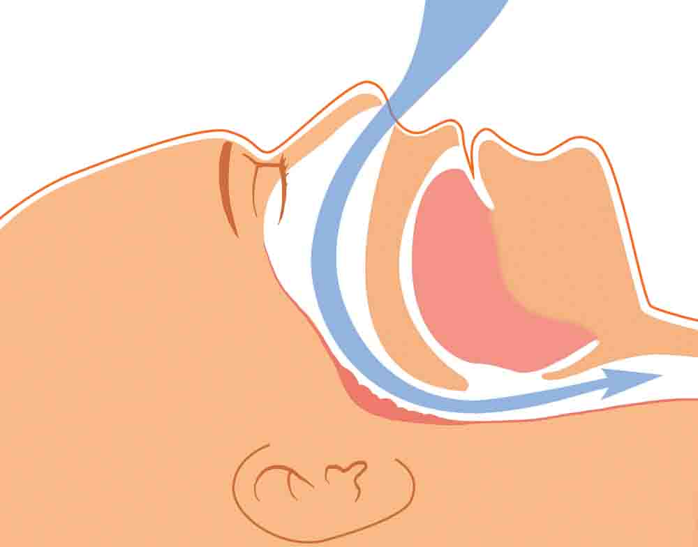 CPAP(持続陽圧呼吸療法)は、CPAP装置本体、呼吸用チューブ、マスクを使用し、睡眠中に気道へ空気を送り、気道を陽圧に保ちます。これにより、上気道の閉塞による無呼吸を防止します。