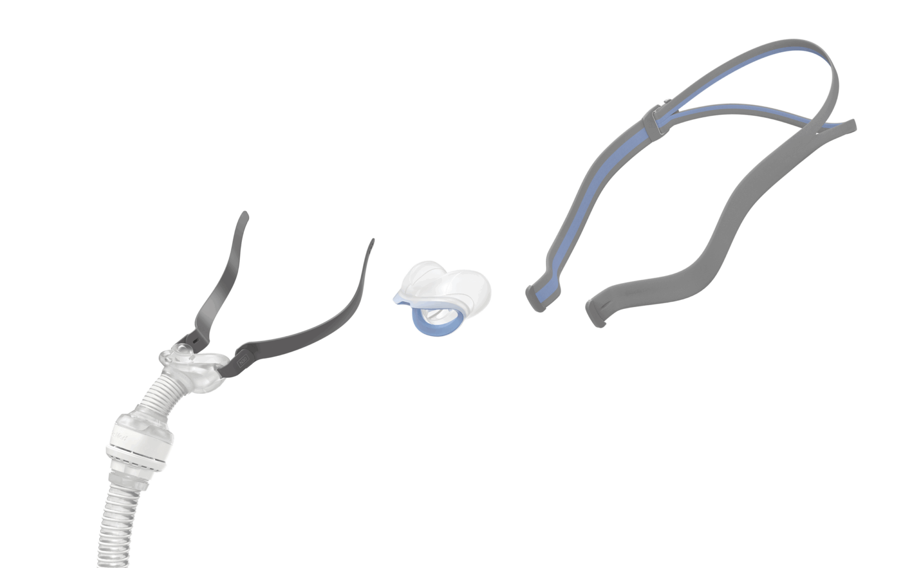 鼻孔に差し込む不快感なく装着できる、設置面積の小さい鼻マスクです。