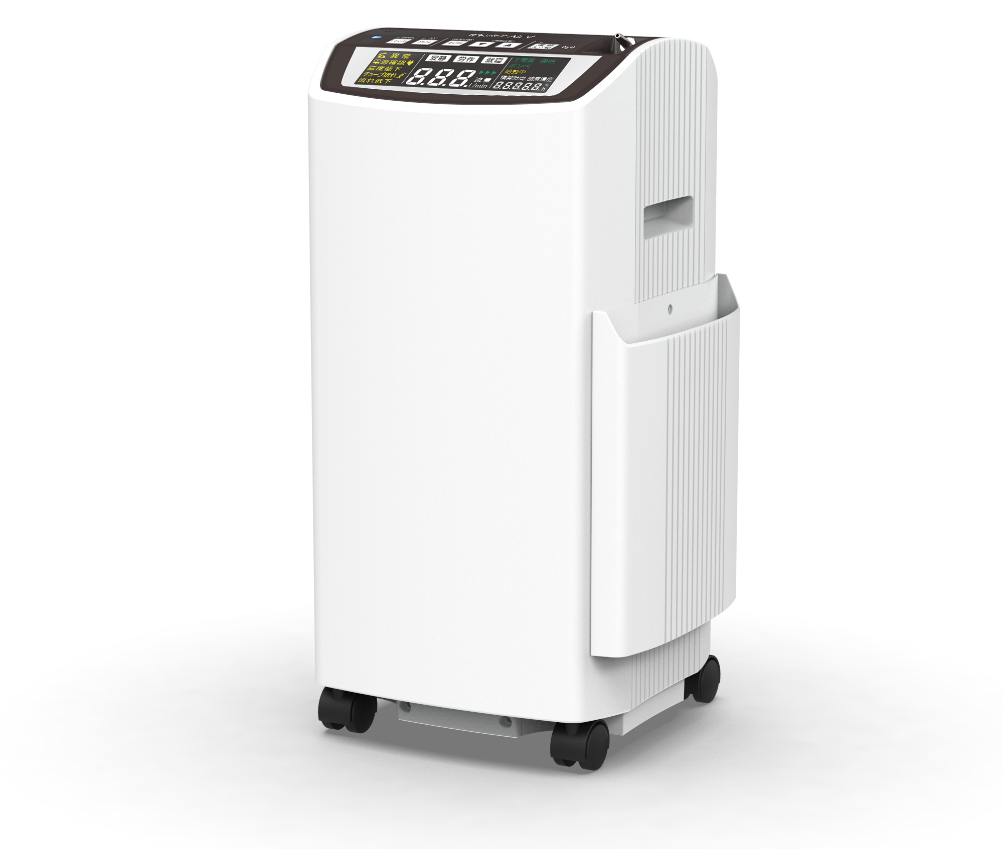 | 警報機能 | 電源確認(停電)、酸素濃度低下、チューブ折れ、異常(圧力、流量、制御、コンプレッサ、高温、火炎検知) |